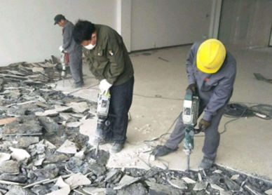 三:公司安排敲墻師傅、準備拆除專用工具,在約定時間達到,開始施工拆除敲墻作業。